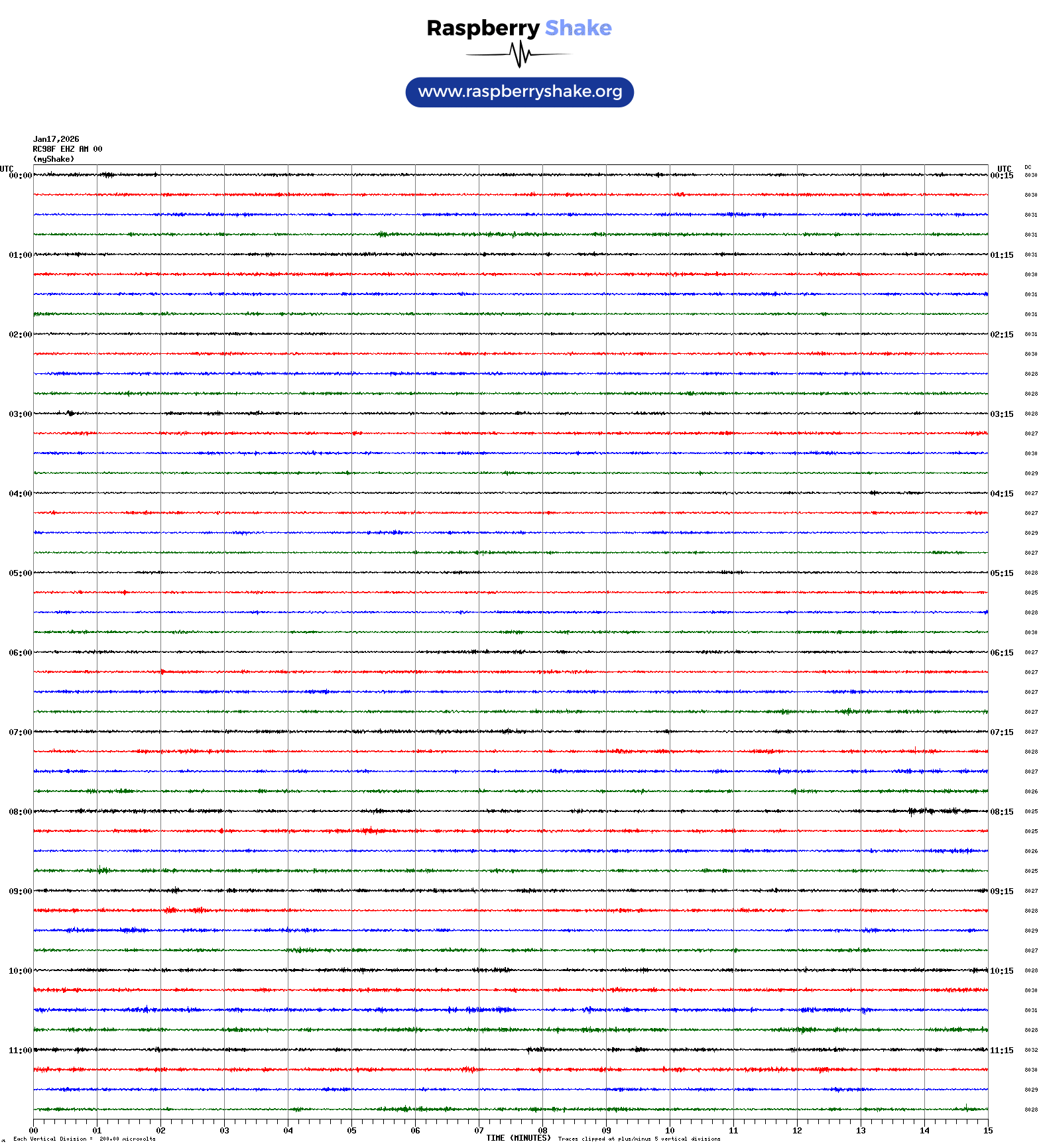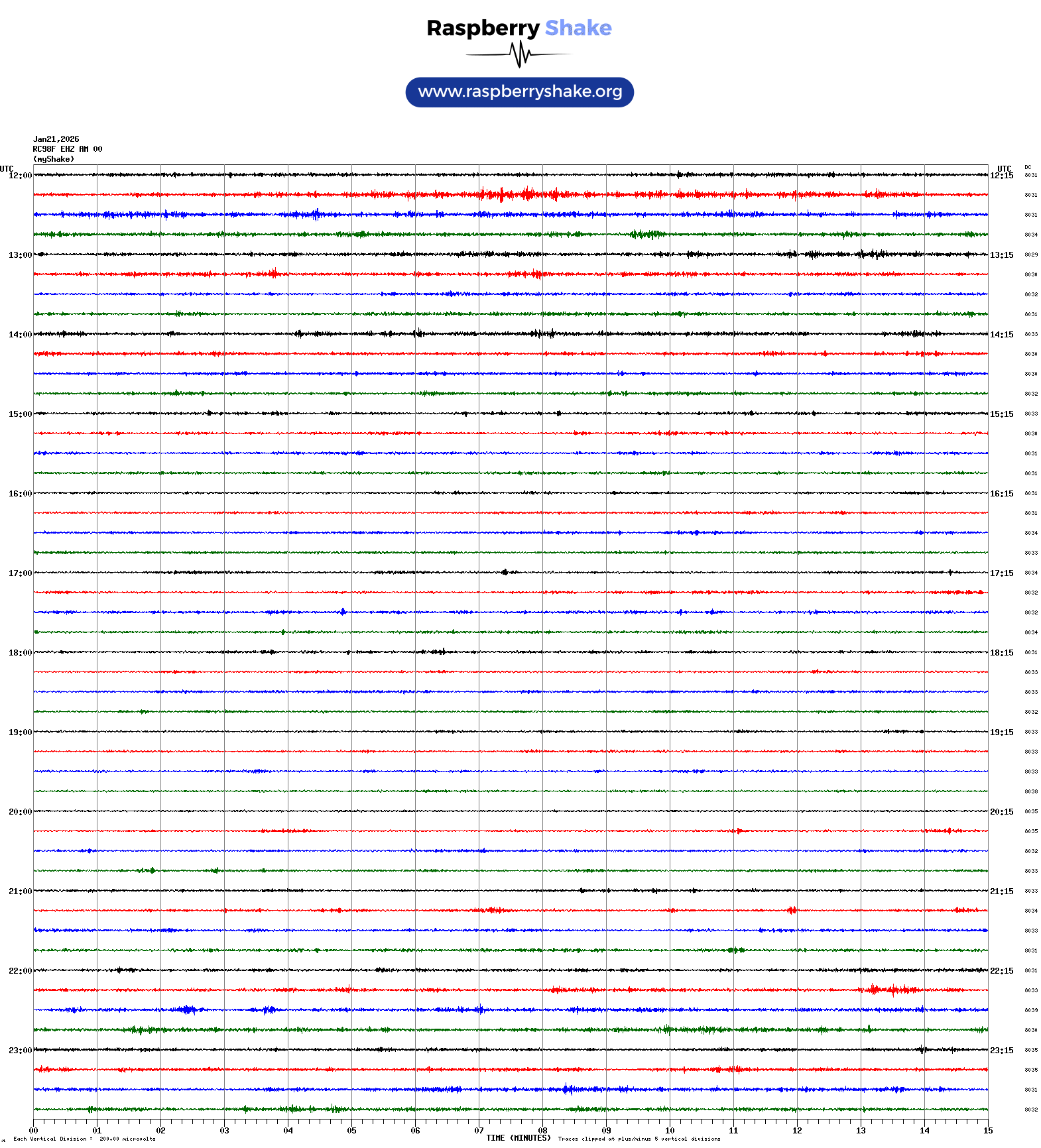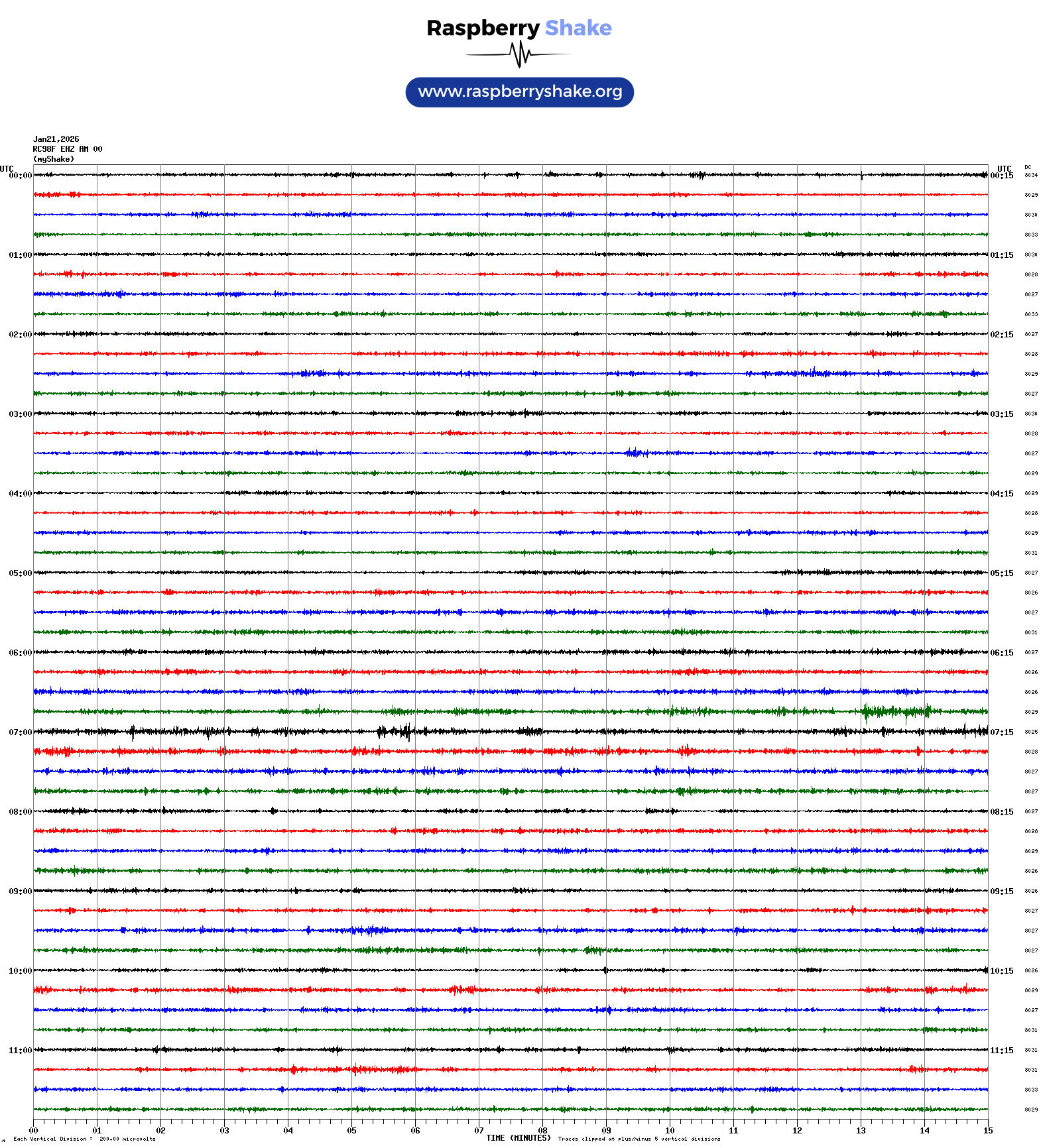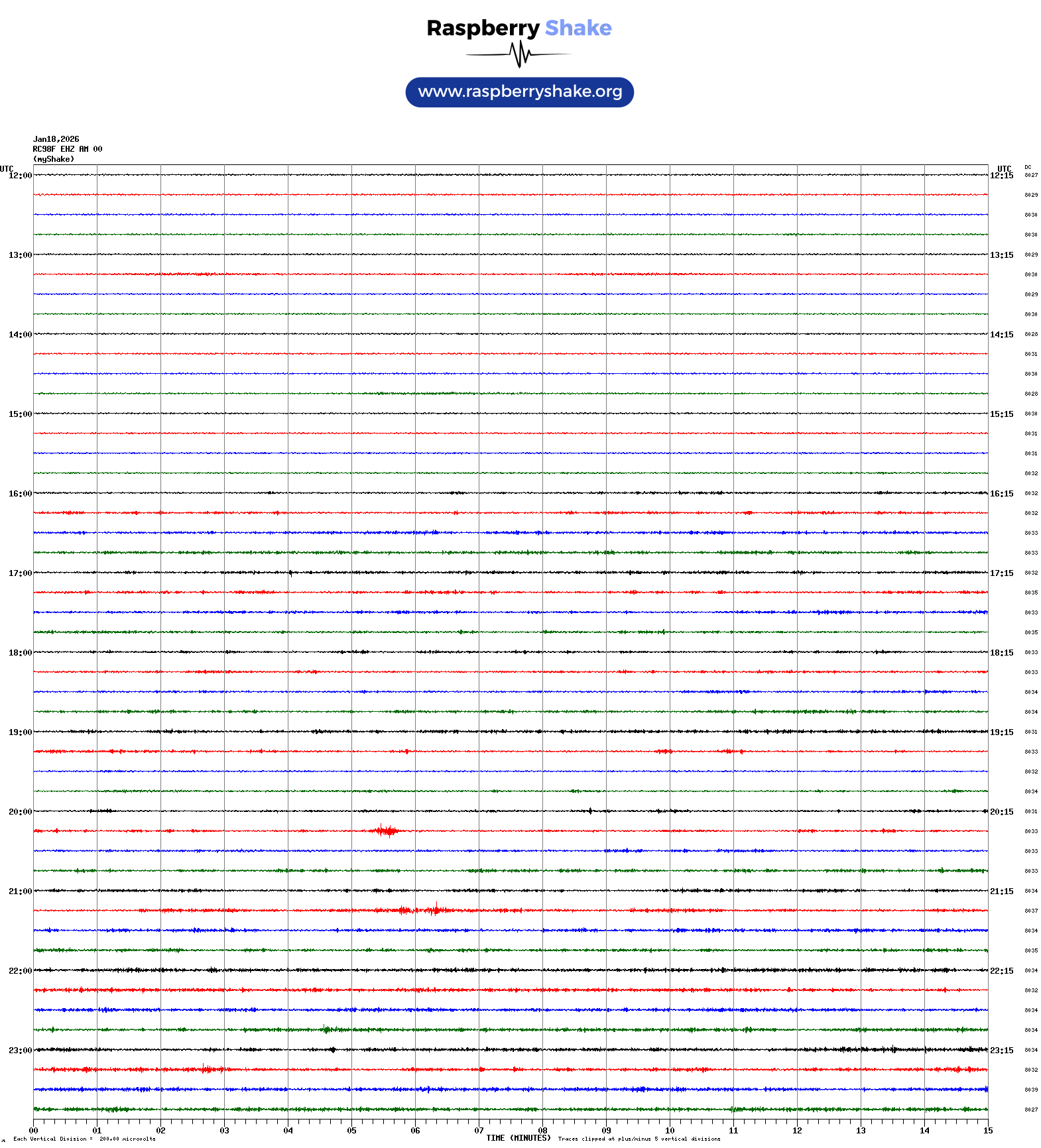 The Helicorder image below is from this Raspberry Shake unit.